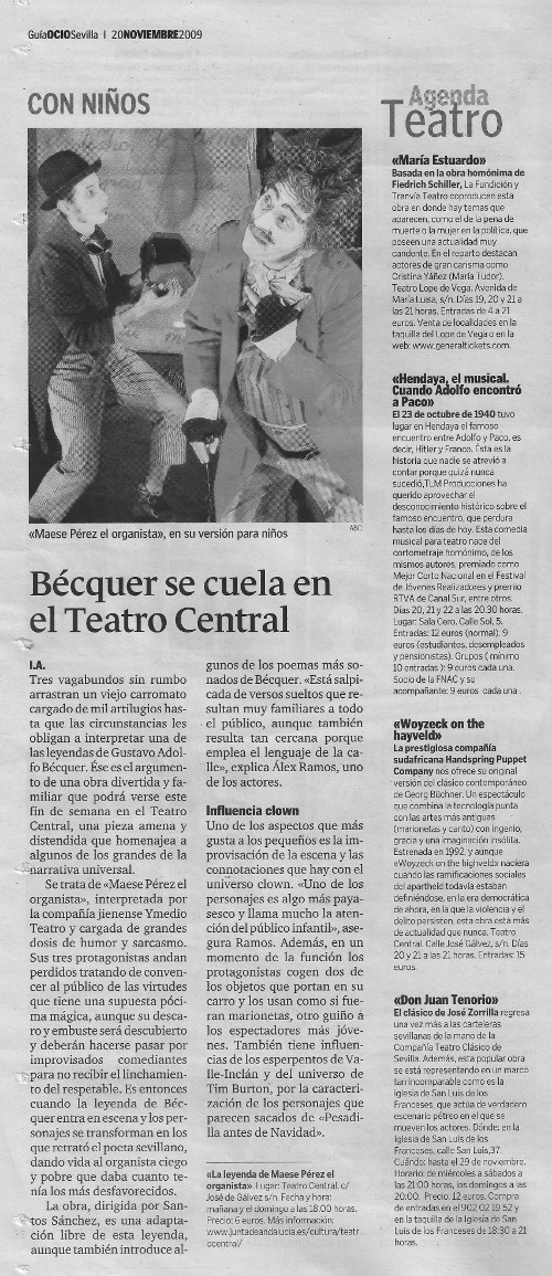 Habrá oferas interesantes, como la que traen los jiennenses ymedio y que lleva por título «…y la leyenda de Maese Pérez el Organista», una pieza cargada de humor y salpicada con rimas de Bécquer.